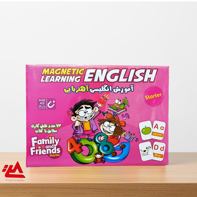 سیاری از والدین دوست دارند کودکان در دوران ابتدایی مدرسه حروف الفبای انگلیسی و بعضی از لغات پرکاربرد از جمله، نام میوه ها، رنگ‌ها و. . را یاد بگیرد. آموزش انگلیسی آهنربایی، دقیقا برای این منظور ساخته شده است. در این محصول 72 عدد فلش کارت مطابق با کتاب بین المللی family and friends starter وجود دارد که حروف و بعضی از واژگان مهم در آن به کودک آموزش داده می‌شود.