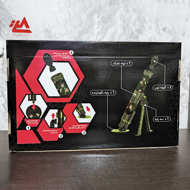 این اسباب بازی از پلاستیک باکیفیت و بدون هیچ‌گونه لبه تیز یا قطعات کوچک برای اطمینان از ایمنی کودکان ساخته شده است. با مکانیزم پرتاب قدرتمند، کودک می تواند تیرهای خمپاره را تا ارتفاع قابل توجهی پرتاب کند و از دیدن پرواز آن‌ها لذت ببرد همچنین با استفاده از پایه نگهدارنده، دقت پرتاب تیرها را افزایش دهند و بازی را مهیج‌تر کنند.