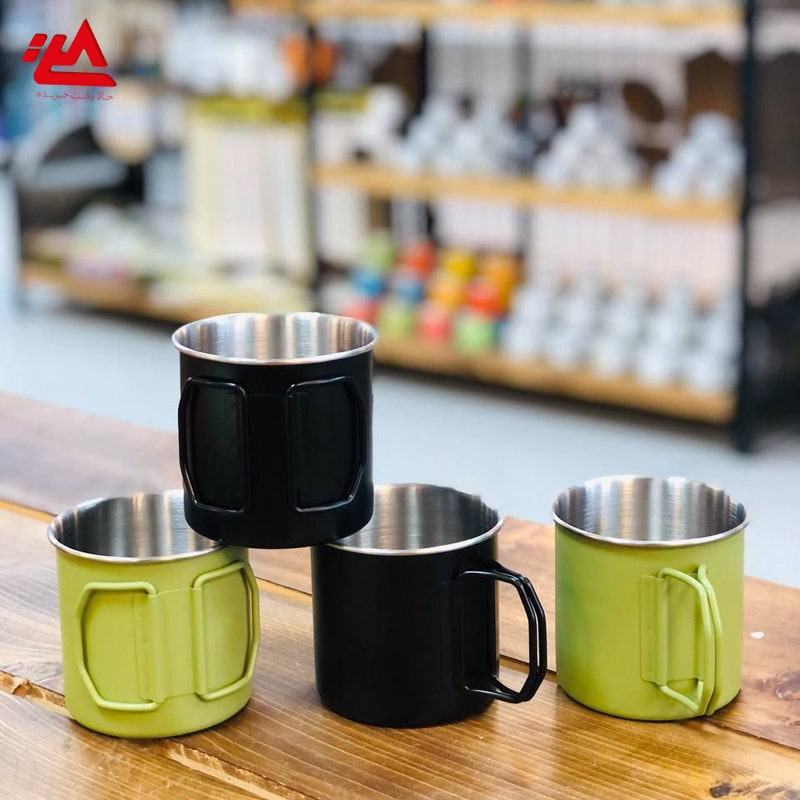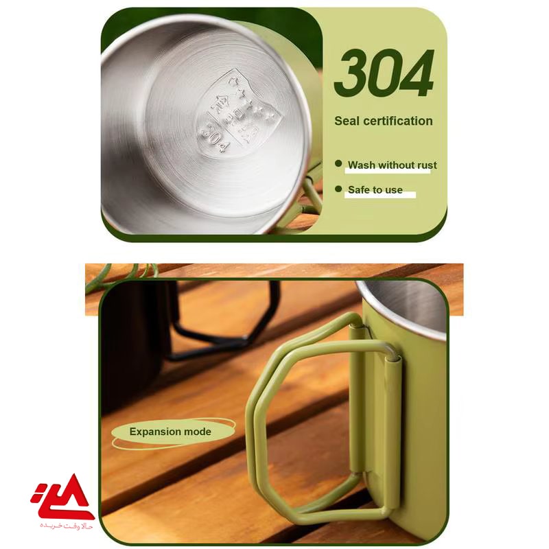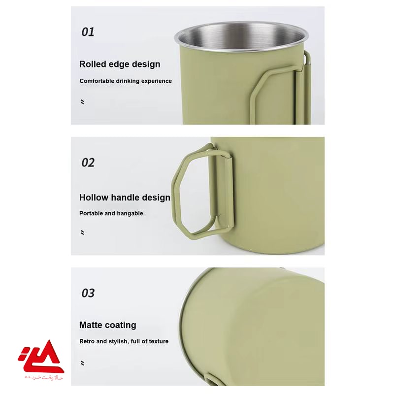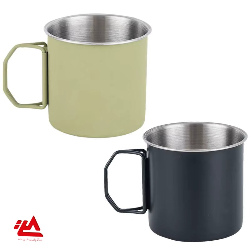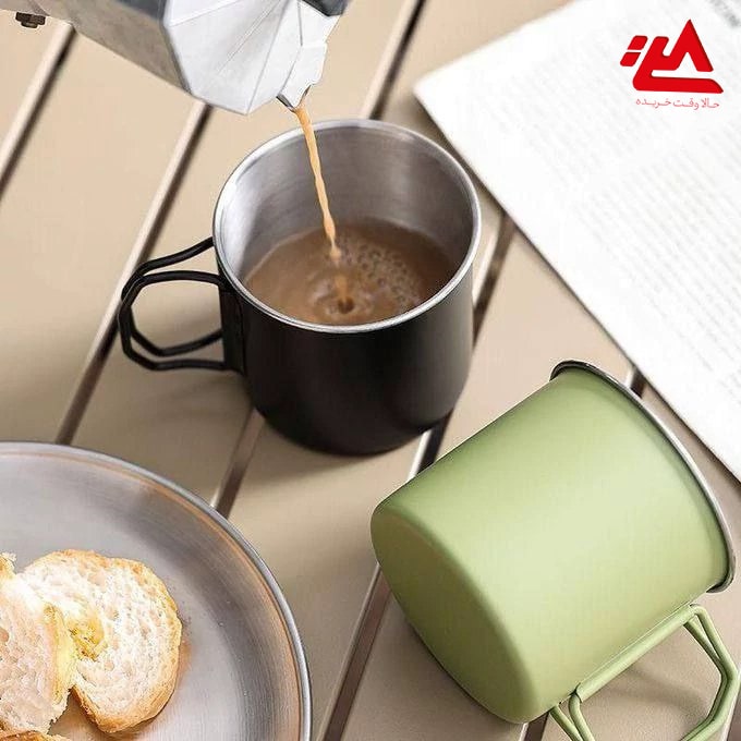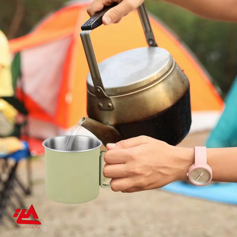 لیوان استیل مخصوص کمپینگ و طبیعت‌گردی با دسته تاشو