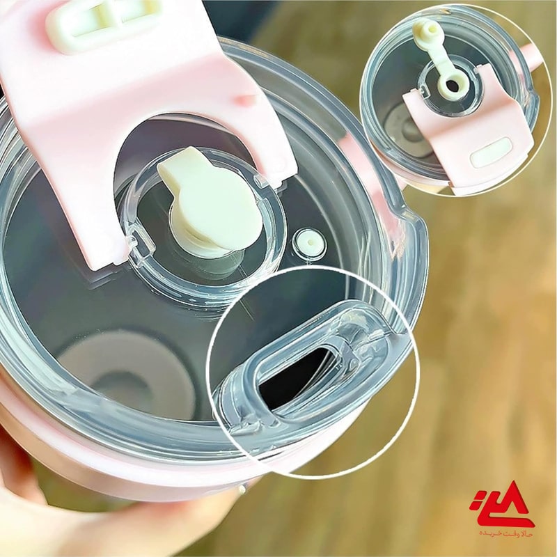 • درپوش محکم با سوراخ مخصوص نی که از ریزش نوشیدنی جلوگیری می‌کند