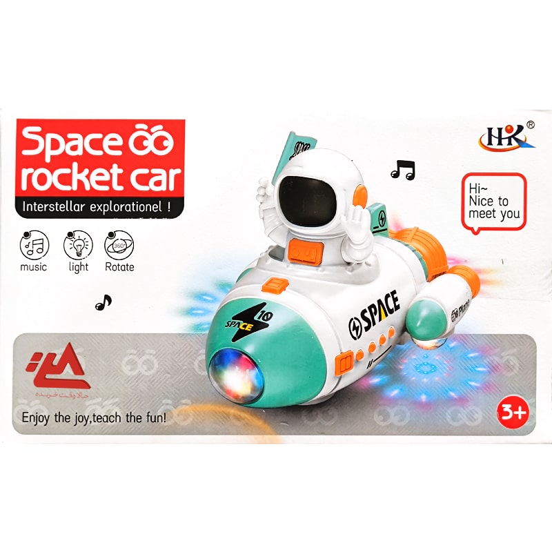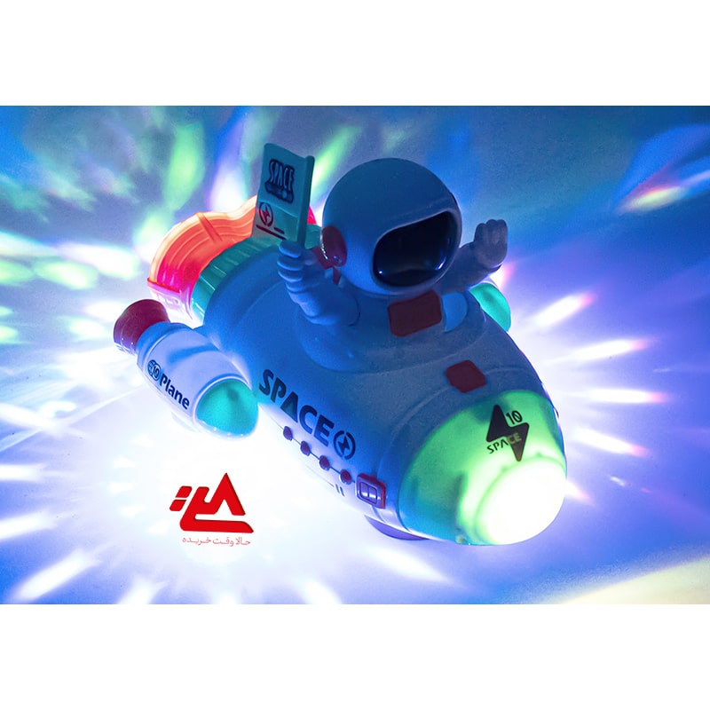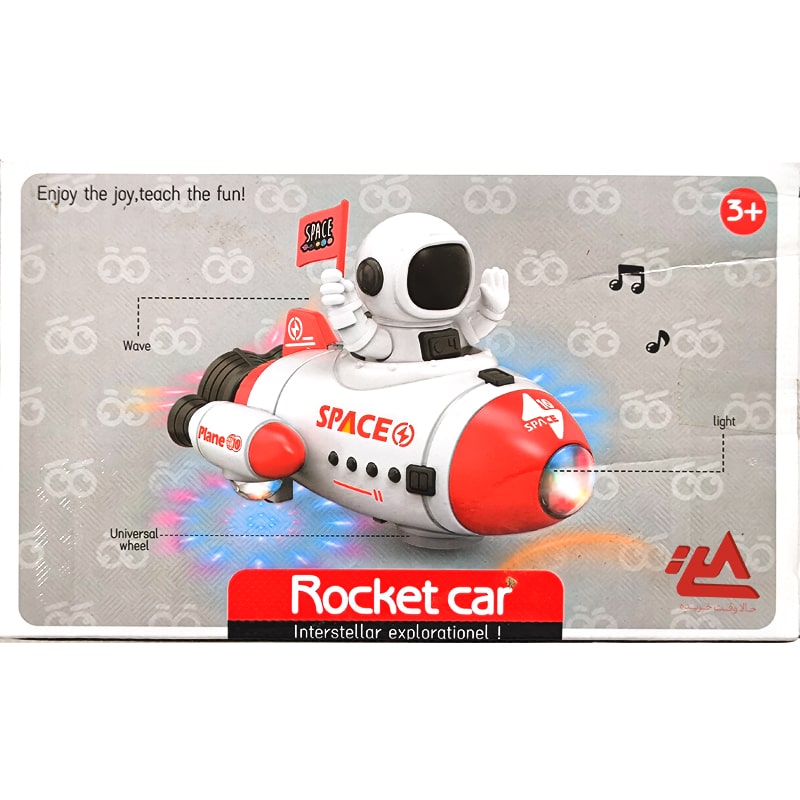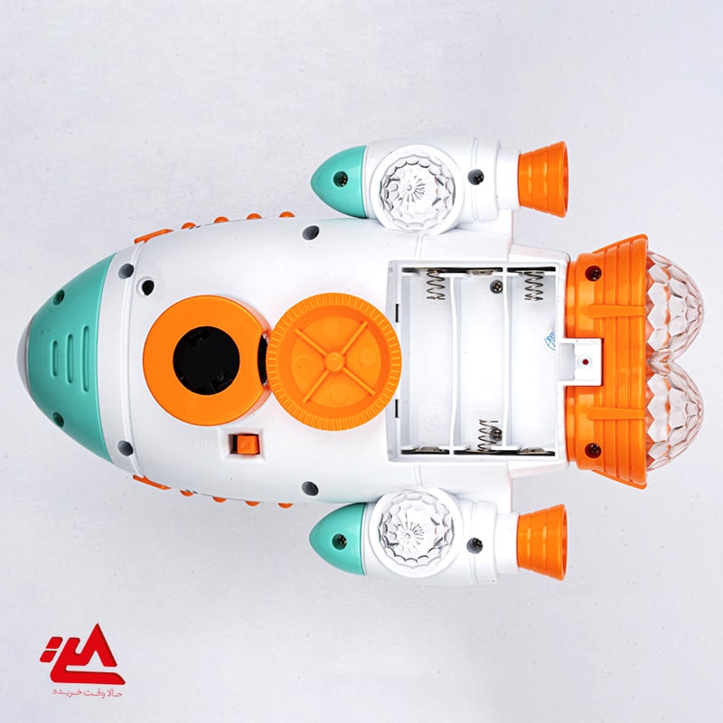 اسباب بازی جت فضایی موزیکال همراه با فضانورد پرچم به دست می‌باشد. سفینه فضایی با برخورد به موانع تغییر جهت می‌دهد. این راکت فضایی دارای رقص نور در نوک سفینه و دم و زیر باله ها است. بازتاب رقص نور دم و زیر باله ها بر روی زمین و دیوار پخش می‌شود. در زمان حرکت فصانورد پرچم در دست خود را حرکت می‌دهد. در طی حرکت هر از چند گاهی ایستاده و به دور خود می‌چرخد. با پخش آهنگ همراه است.موشک فضایی با سه باتری قلمی کار می‌کند. حتما حلقه پلاستیک دور چرخهای گردان زیر موشک را بردارید تا بتواند روی زمین حرکت کند.